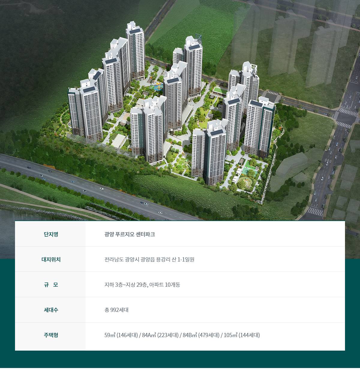 총 992세대의 대단지로 조성되어 광양의 주거 가치를 선도하는 푸르지오 브랜드 프리미엄을 누릴 수 있습니다.